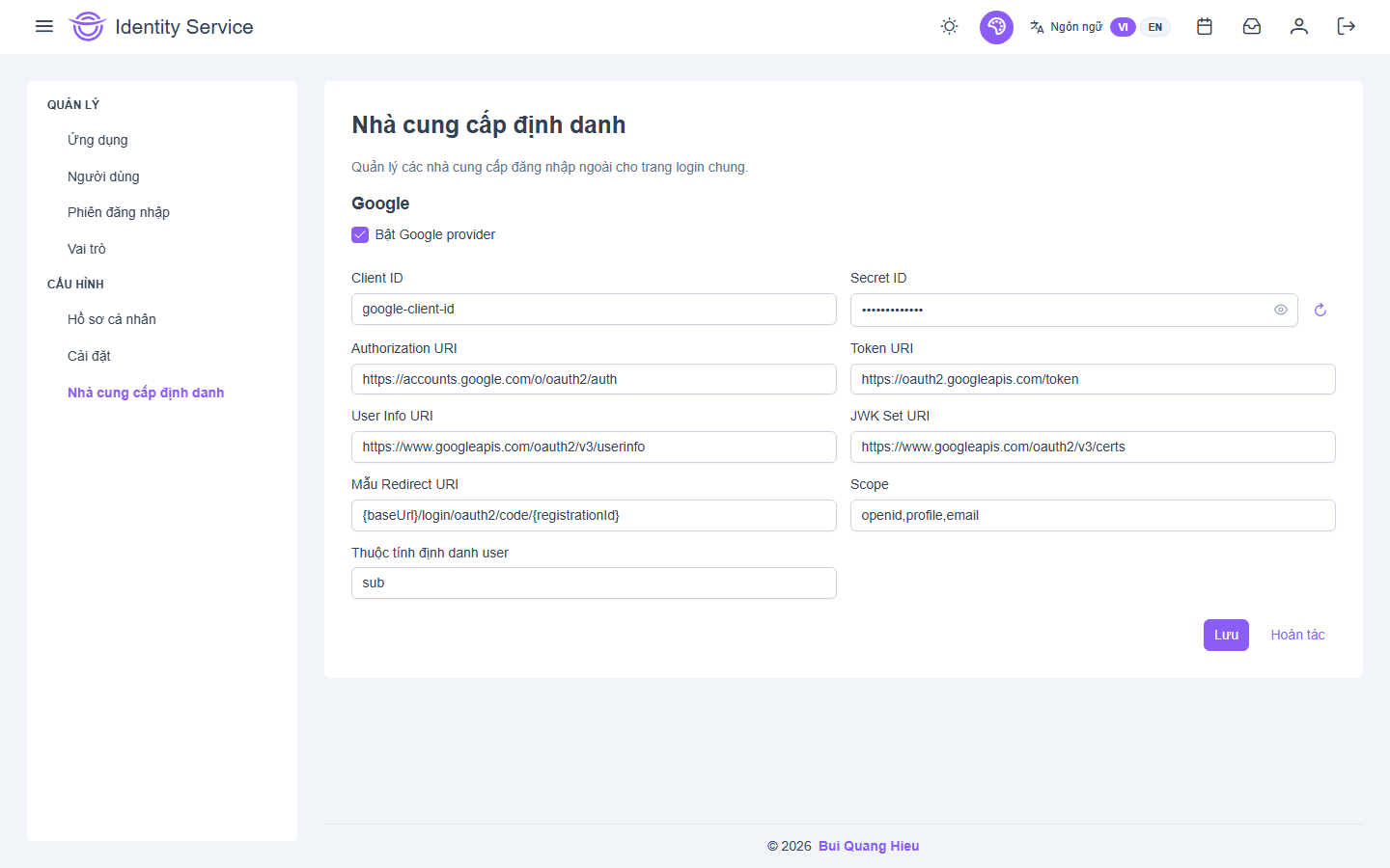 Identity Service là minh chứng cho năng lực xây dựng một sản phẩm platform bảo mật end-to-end: đúng chuẩn, đúng nghiệp vụ, và sẵn sàng vận hành ở môi trường nhiều ứng dụng.